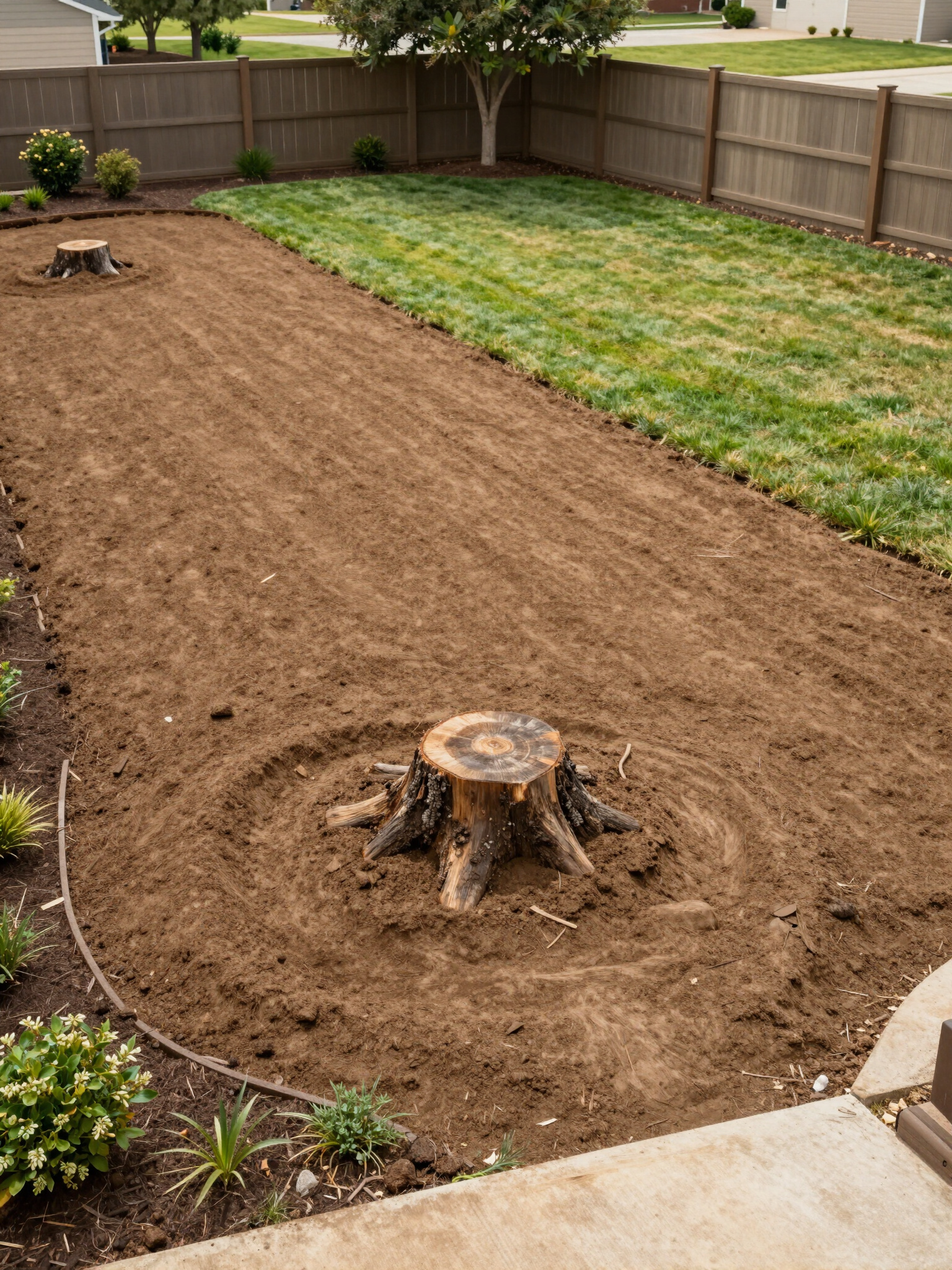 Grinding produces a mixture of wood mulch and soil. We backfill the hole with this material to ensure safety. For an additional fee, we offer complete debris haul-away if you plan to install sod or replant immediately.